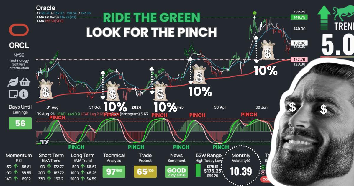 The LEAF indicator isn’t just another tool. It’s a game-changer that checks over 50 traditional and custom indicators like RSI, MACD, and many others and considers price action to show if a stock is overbought or oversold.